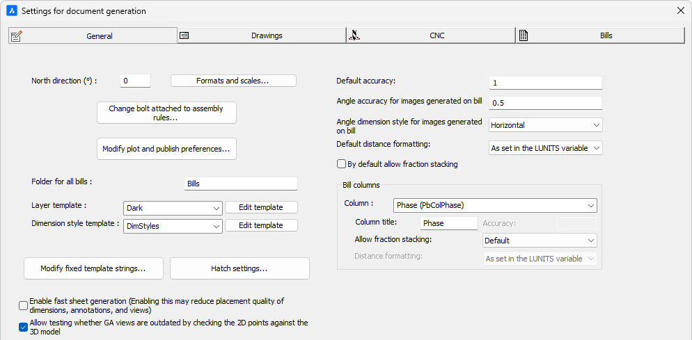 These options allow you to configure the bill columns used in the regular Bill of materials but also in the bill tables that are shown on all 2D sheets.