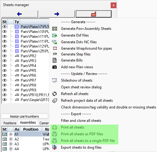 These tools allows you to print all of the sheets to a device or to PDF files