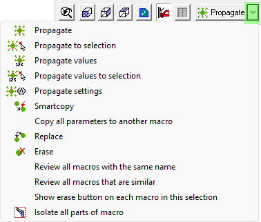 Next to the propagate button, there is a drop-down button that gives us access to a range of tools that will do something with the currently active macro(s) :