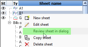 To use this new tool, right-click on a sheet or part in the sheets manager and choose the option Review sheet in dialog :