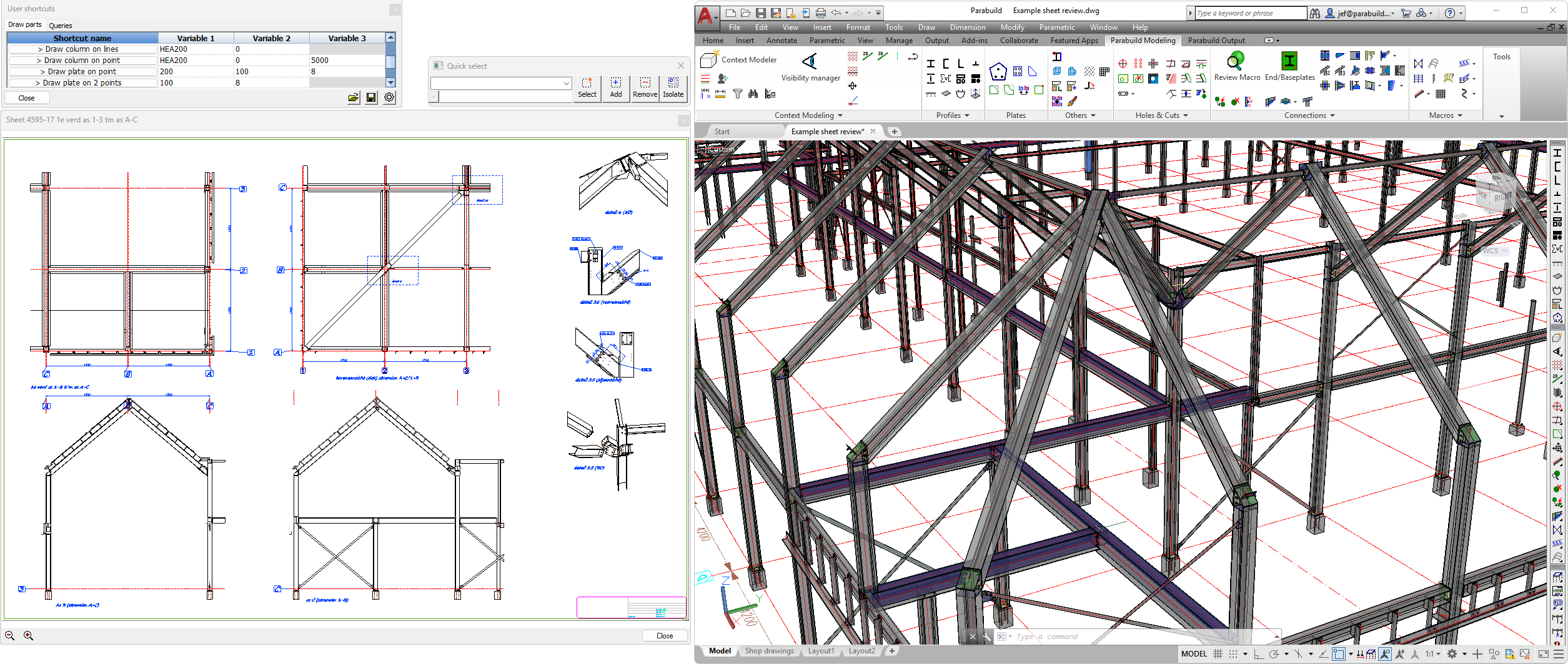 This is an example of the review sheet window opened outside of the main AutoCAD/Parabuild window. The GA sheet that is shown is a part of the 3D model opened in the Parabuild session.