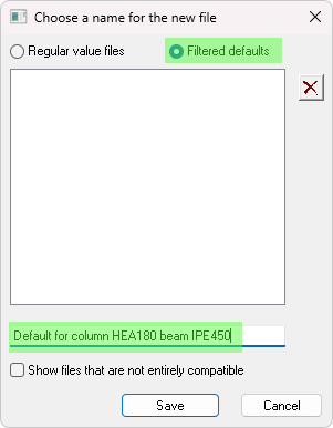 2) In the save dialog we switch to the Filtered defaults saving method, and we enter a name for this default.