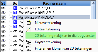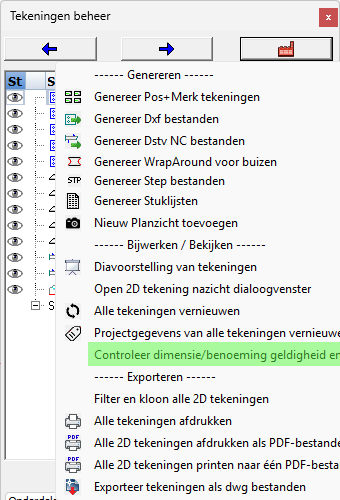Na het vernieuwen is er een controle die controleert op niet-verbonden benoemingen en dimensies, onderdelen en merken met dubbele tekeningen of die ontbreken in de werkplaatstekeningen.