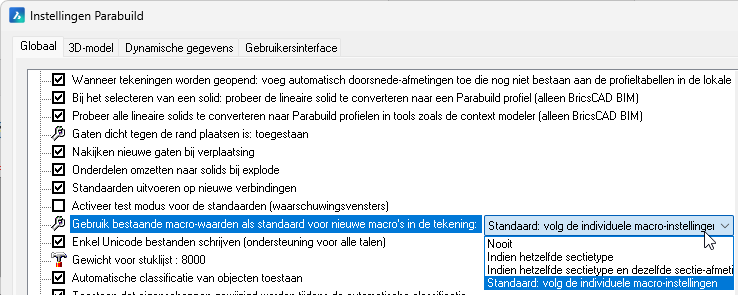 Wanneer een tekening wordt geopend, zal Parabuild elke macro opnieuw berekenen en dit kan verschillen veroorzaken ten opzichte van het laatst opgeslagen resultaat. Dit is het geval wanneer geometrie van macro's per ongeluk werd verwijderd of tijdens een bestandsherstel waarbij objecten werden verwijderd om het bestand te repareren.