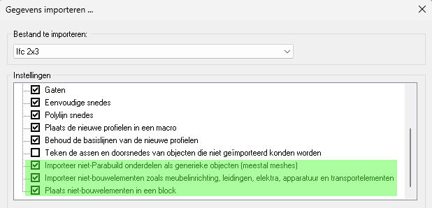 - Verbeteringen bij het importeren van Ifc-bestanden: Parabuild kan nu ook niet-bouwkundige geometrie, zoals leidingen en meubilair, importeren als generieke objecten.