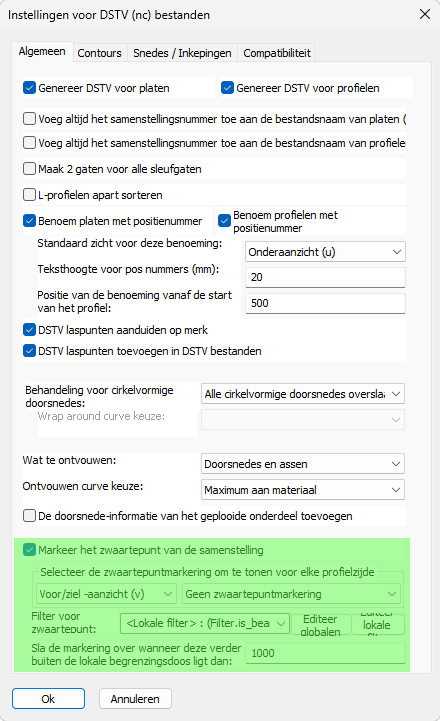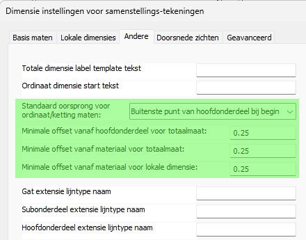 De instelling voor dimensies van platen, profielen en samenstellingen heeft de volgende nieuwe instellingen gekregen: