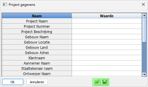 Het is nu mogelijk om de volledige lijst met projectgegevens op te slaan voor eenvoudig hergebruik in andere projecten: