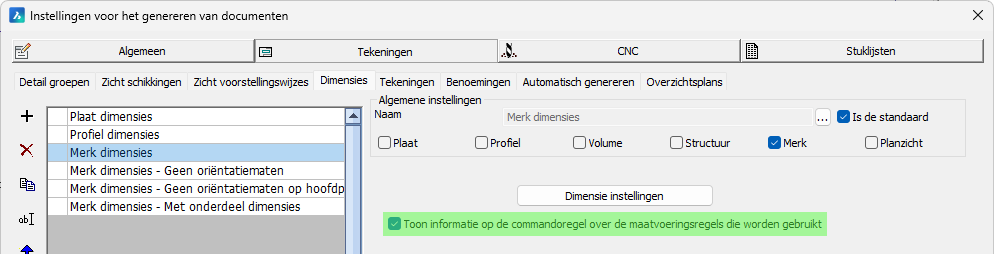 De volgende nieuwe uitgebreide optie maakt het praktischer om de dimensiesregels te leren en te debuggen :