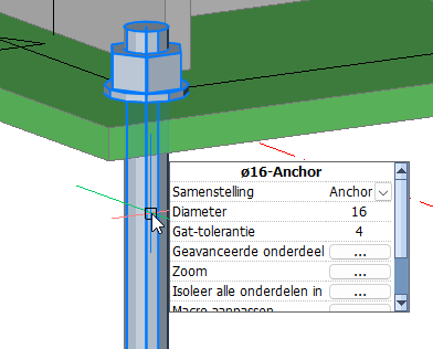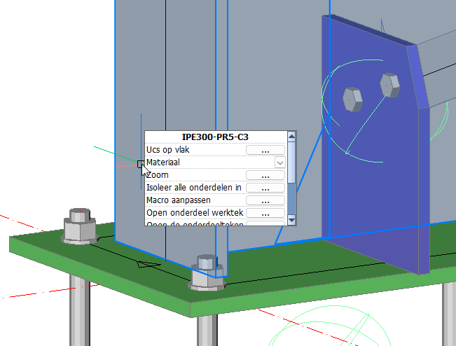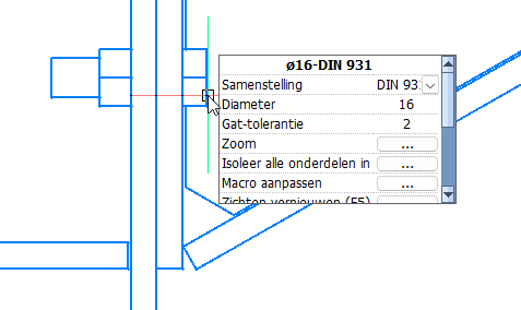 De nieuwe Context menu tool geeft u relevante eigenschappen en acties voor het object onder de cursor. Een voorbeeld is het veranderen van de diameter van een bout in het 3D-model of op een zicht zonder eerst een icoon of eigenschap te hoeven zoeken. De lijst met beschikbare eigenschappen en acties kan worden aangepast.