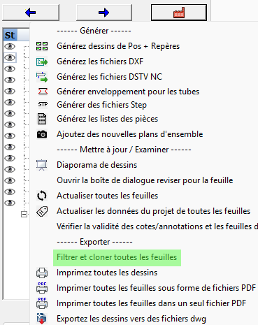 - Appliquez automatiquement les filtres de feuilles lors de l'impression ou de l'export, similaire au filtrage et clonage, mais cette commande envoie directement les feuilles filtrées à l'imprimante (papier ou PDF).