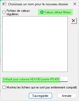 - Il est maintenant possible de sauvegarder facilement les valeurs de connexion comme valeurs défaut qui seront chargées lorsque la même connexion sera appliquée aux mêmes dimensions de profilés à l'avenir.