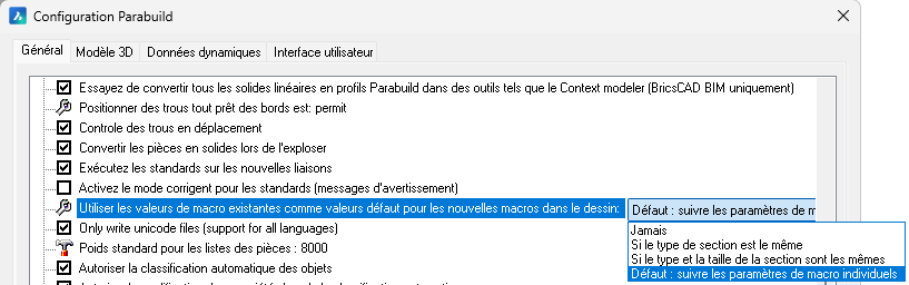 Cette opération va enregistrer les nouvelles propriétés Parabuild dans l'installation AutoCAD.