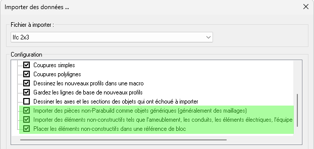 - Améliorations à l'import de fichiers Ifc : Parabuild peut maintenant importer aussi des géométries non structurelles comme les conduits et les équipement en tant qu'objets génériques.