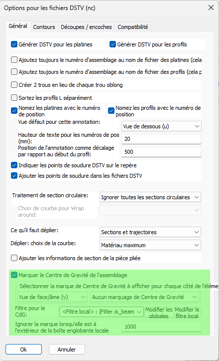 Une modification de la propriété existante Filtres Ne pas percer pour les boulons a été appliquée : cette propriété supporte maintenant les jokers avec "*", et vérifiera aussi si le nom de la pièce correspond au filtre.