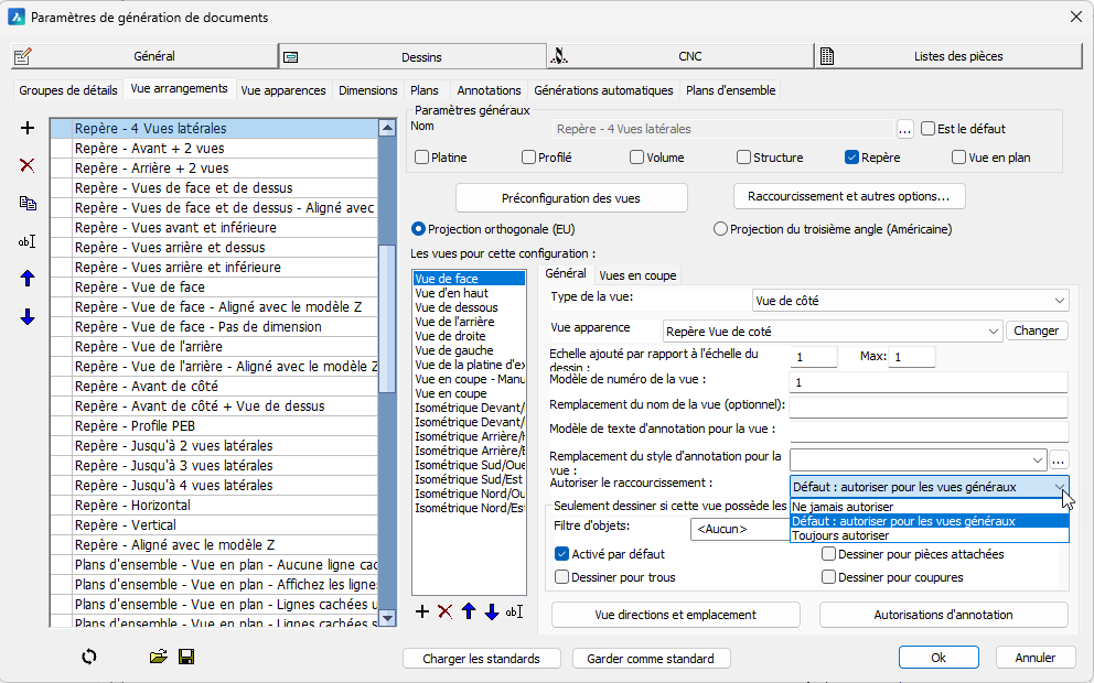 Note : lorsque vous souhaitez rafraîchir des feuilles générées avec une ancienne version de Parabuild, il est préférable avant de modifier le modèle 3D de rafraîchir d'abord les anciennes feuilles avec ces 2 réglages désactivés pour forcer un rafraîchissement complet et mettre à jour toutes les vues vers la version actuelle :