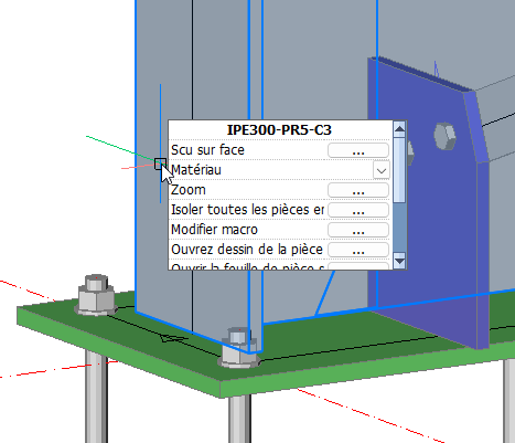 - Le nouvel outil Context menu vous propose des propriétés et actions pertinentes pour l'objet sous le curseur. Par exemple, il permet de changer le diamètre d'un boulon dans le modèle 3D ou sur une vue sans avoir à chercher une icône ou une propriété au préalable. La liste des propriétés et actions disponibles peut être personnalisée.