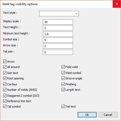 Selecting this button will allow you to customize how the weld symbol will look. The dialog is self-explanatory :