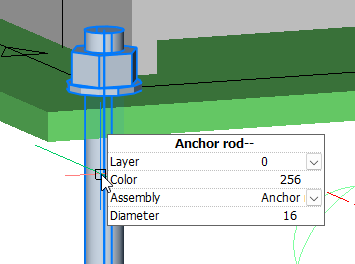 The new Context menu tool gives you relevant properties and actions for the object under the cursor. An example is to change the diameter of a bolt in the 3D model or on a view without having to search for an icon or a property first. The list of available properties and actions can be customized.
